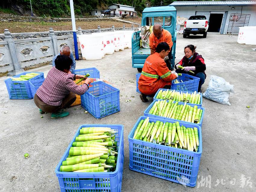 暮春时节,秦巴山脉间的竹山县处处生机盎然,一场关于春笋的丰收盛宴正在山间上演。山间竹林里,村民们穿梭其间,弯腰、采笋、装袋,清脆的采笋声、欢声笑语交织在一起,汇成了一首热闹的增收交响曲。一根根鲜嫩的春笋,从青翠的竹林中被采摘下来,快速运往各个收购点、加工车间,成为竹山县群众增收致富的“硬通货”,被当地百姓亲切地称为“致富笋”。