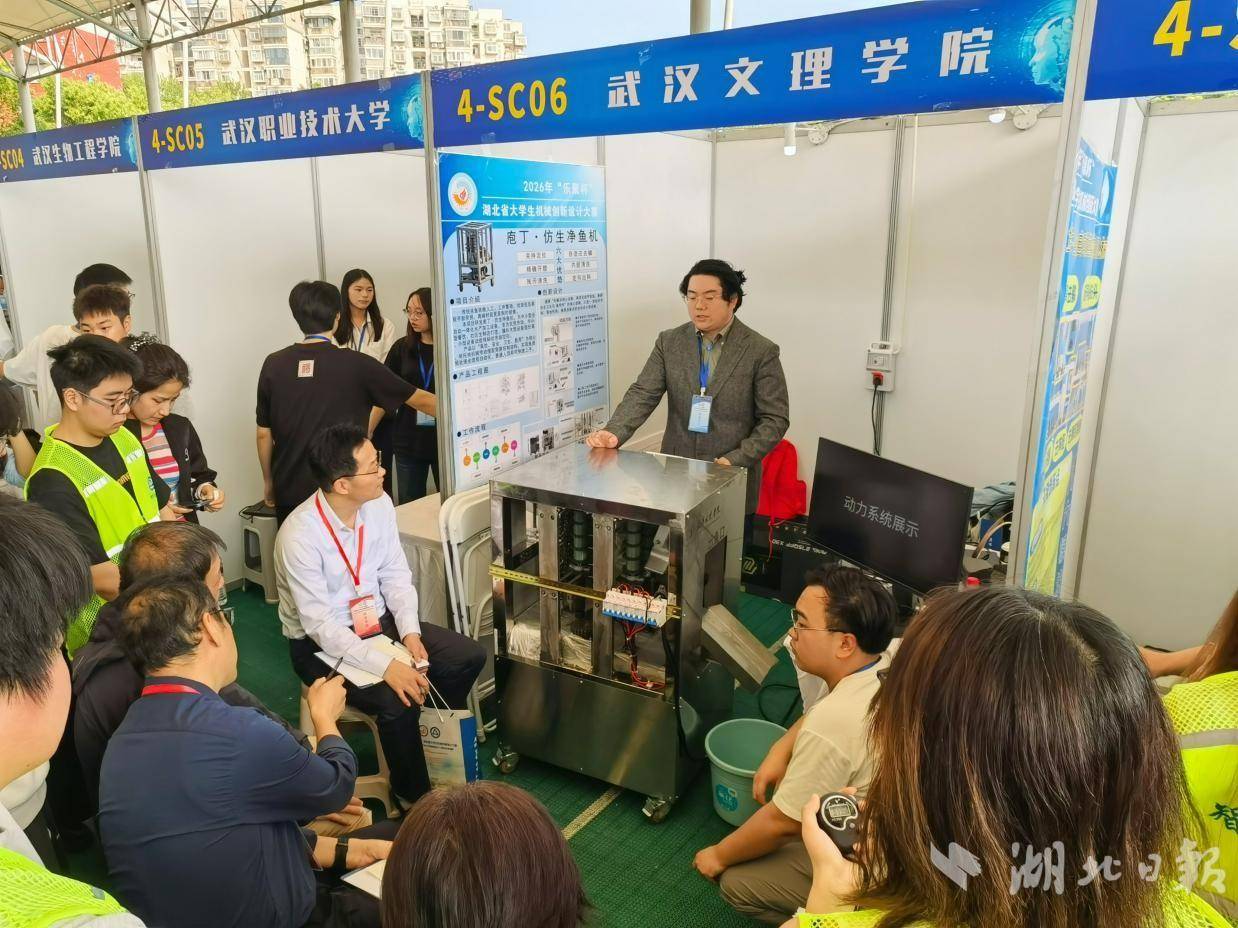 全国大学生机械创新设计大赛是教育部批准的高水平学科竞赛,每两年举办一届。本届大赛以“灵巧・智能・美好生活”为主题,吸引全省58所高校、430支队伍、2900余名师生参赛,设仿生蝴蝶、水产品初加工机械、叶菜净化包装机械三大竞赛方向。武汉文理学院精心筹备,选派5支团队参赛,历经初审、现场演示、公开答辩等多轮角逐,实现全员获奖。