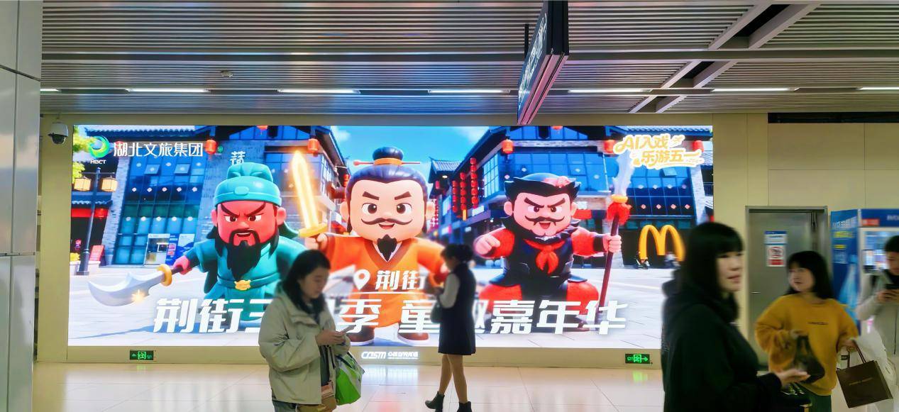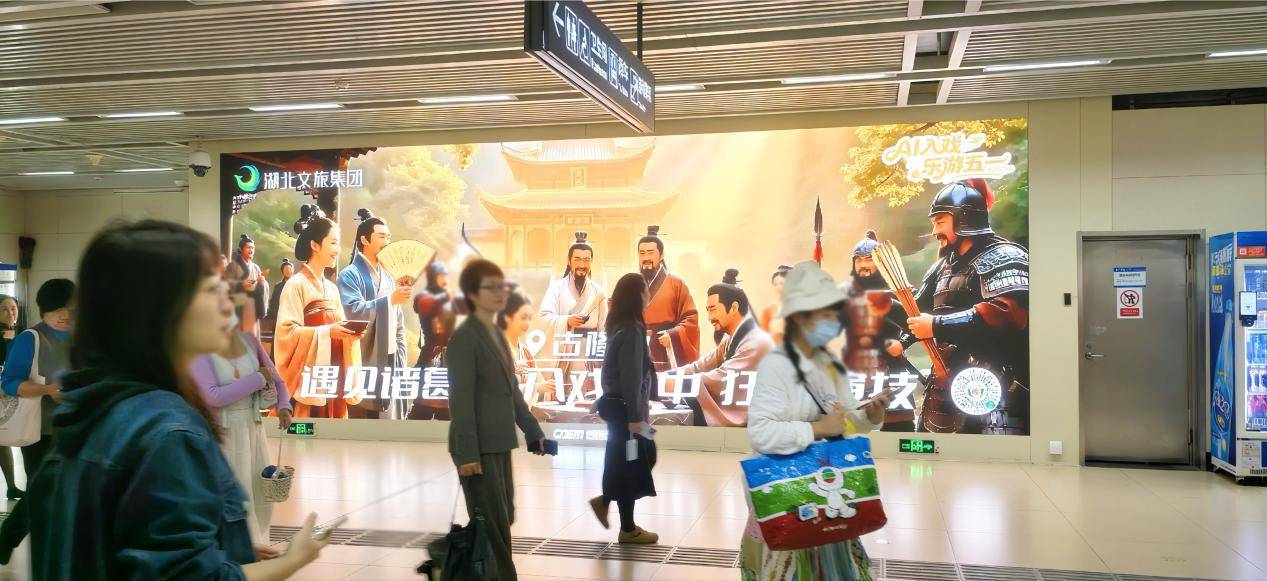 与传统的静态海报不同,此次湖北文旅集团采用AI生成的动态视频进行地铁大屏投放。视频中,恩施大峡谷的绝壁之上,AI生成的土家妹子踏云而行;荆州古城的城墙下,三国人物从历史中萌趣走出;神农架的原始森林里,游客追思着炎帝神农氏“八大功绩”……“感觉就像站在景区里一样,那个画面会动,有云雾、有光影,能飞行,特别有沉浸感。”市民小陈在楚河汉街站连续看了两轮视频。