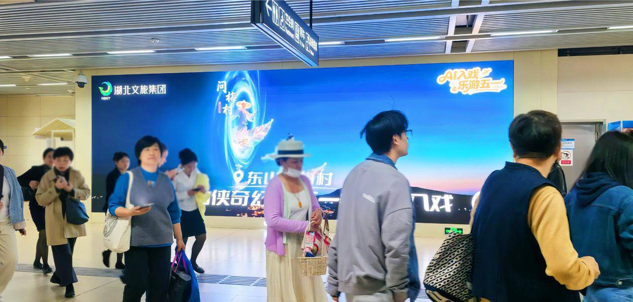 湖北日报讯 (记者王晶、通讯员张世雄)“刚出地铁闸机,就被大屏上的画面震住了——左边的绝壁峡谷,右边居然是土家妹子伴西兰卡普飞行,太酷了,我赶紧拍了张照片发朋友圈!”4月26日,武汉地铁楚河汉街站、王家湾站、范湖站的LED大屏集体换装,一组组现实原景携手AI大片的穿越式画面高频滚动,不少乘客停下脚步、举起手机拍摄、分享,地铁点也成了打卡点。