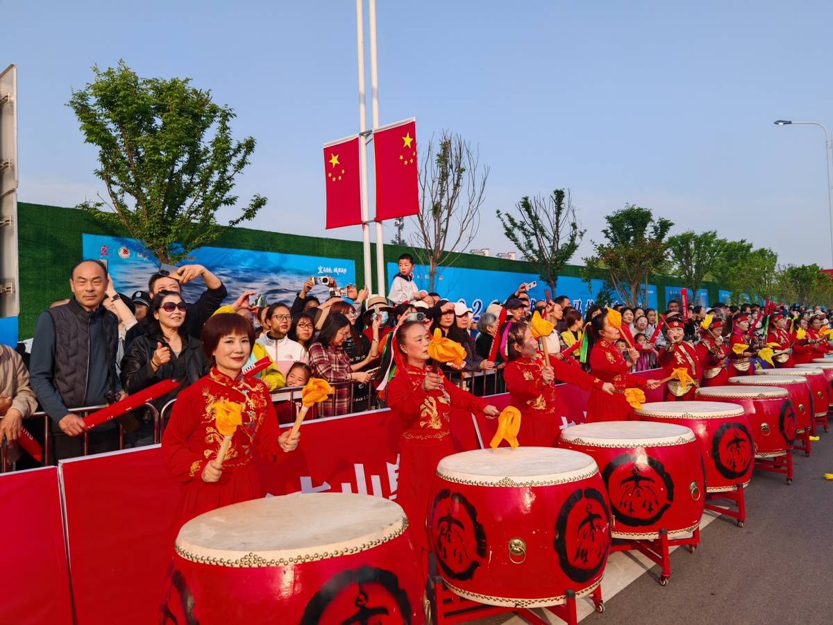 震天的锣鼓来加油。(湖北日报全媒记者 刘孝军 摄)