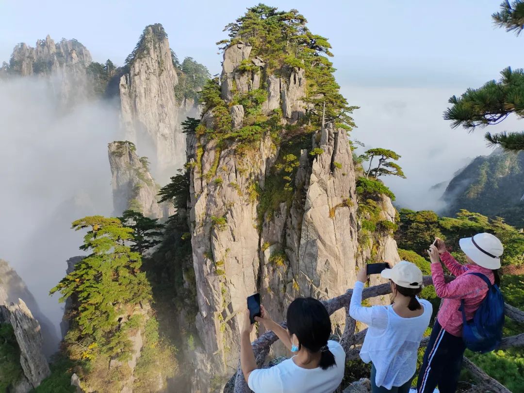 国庆假期,黄山风景区严格落实“限量、预约、错峰”要求,主动将日最大接待量从常态下的75%降至50%,即每天接待游客不超过2.5万人。10月2日、3日,景区连续两天发布门票预约数量达最大承载量公告,关闭网络预约通道,实现安全平稳度峰。