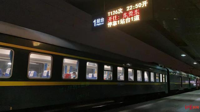 “旅客们,你们好。开往东莞东的T126次列车就要开始检票了……”22:23分,候车室内广播响起,候车的人群纷纷起立进站。