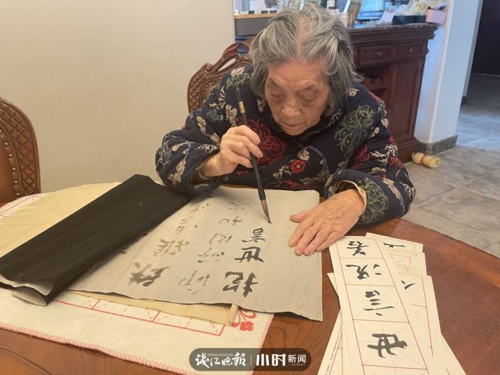 去年,大女儿还带着胡奶奶,上了社区老年大学的书法班。没想到,胡奶奶一下子就爱上了,毛笔字练得有模有样,还得到了不少同学的夸赞。