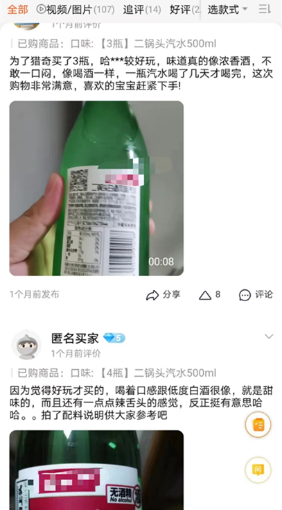 不过,也有些消费者觉得这款汽水不太好喝。“在便利店买水时看到了,没忍住买了一瓶。”消费者孙先生觉得比较难喝,口感就像二锅头放在冰箱里冻上又化开、化开又冻上,再加上点气泡水,“真心”无力接受。