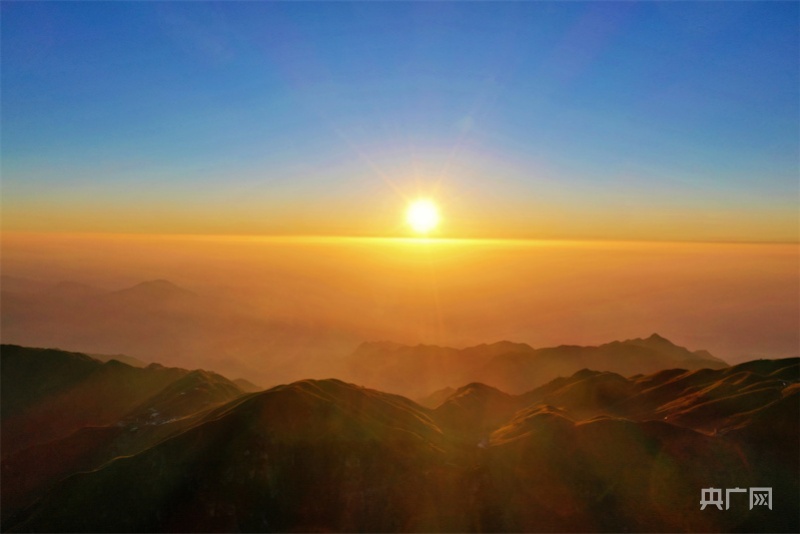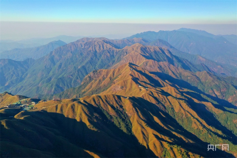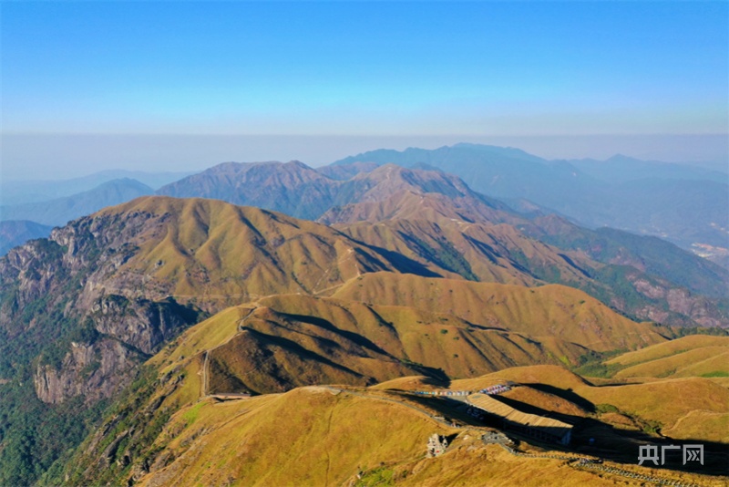 武功山景区的万亩高山草甸在太阳的照射下,披上了金黄的盛装(央广网发杨思旭摄)