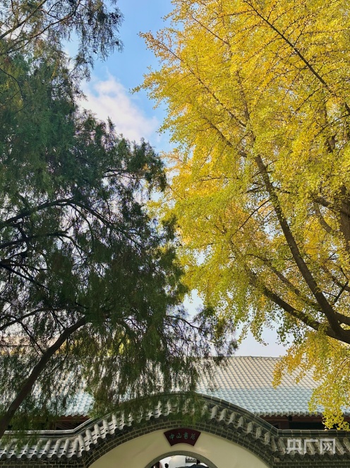绿色的侧柏与黄色的银杏交相辉映(央广网记者李舜摄)