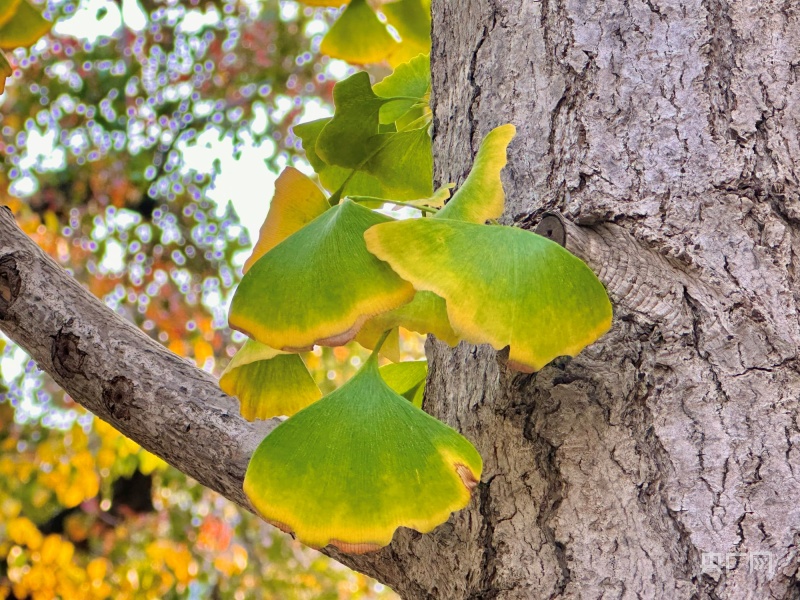 中山公园里,银杏树叶正在由绿转黄(央广网记者李舜摄)