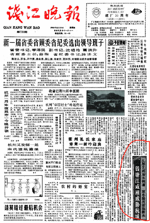 1988年,钱江晚报就已经开始关注钱塘江咸潮问题。