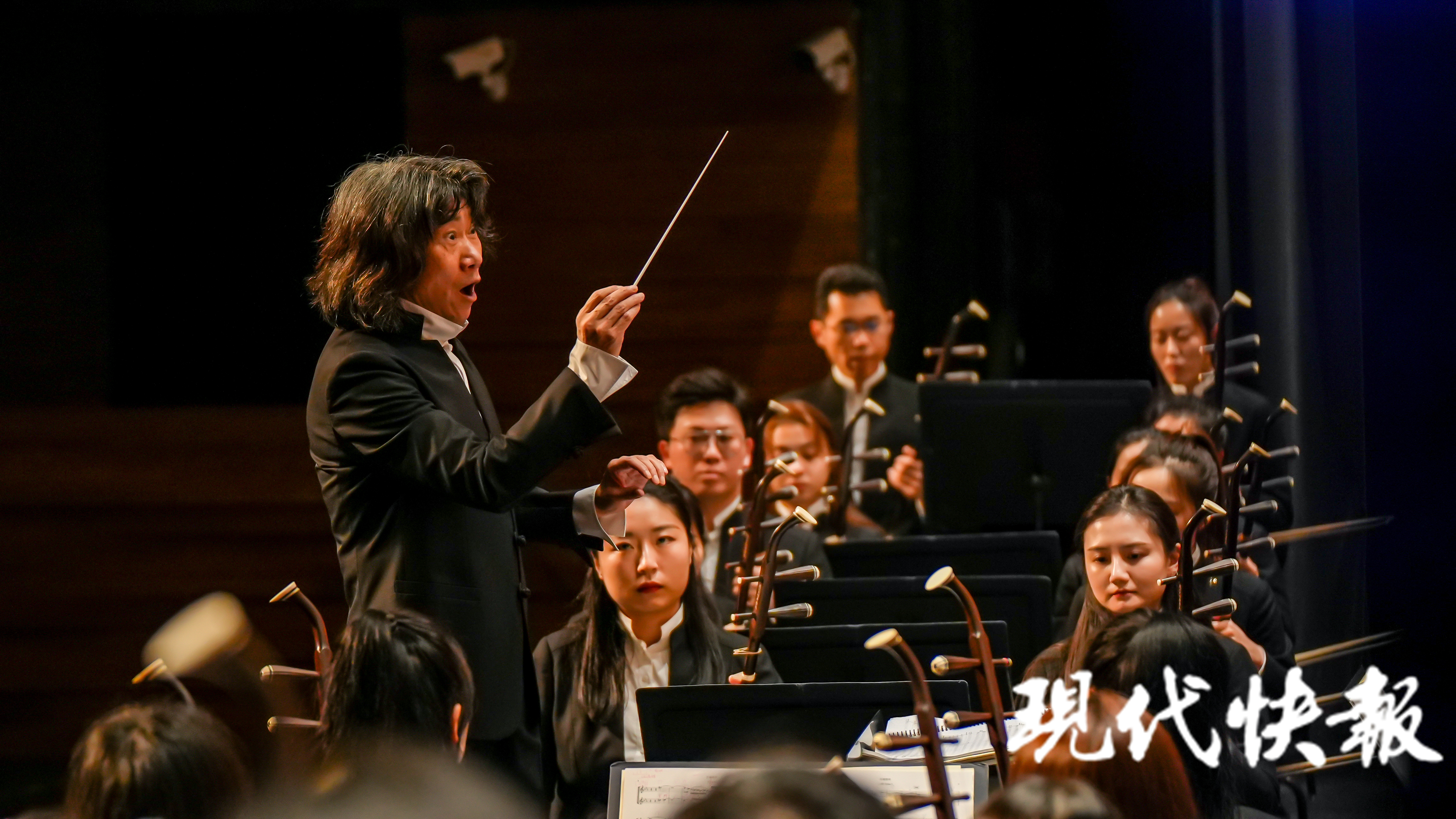 现代快报讯10月30日晚,苏州民族管弦乐团赴近邻无锡,受邀参加由无锡市人民政府主办的“2022太湖文化艺术季”,在无锡大剧院音乐厅奏响了民族交响音乐会《江南》。演出由著名指挥家、乐团艺术总监兼首席指挥彭家鹏执棒,乐团青年演奏家倾情演绎。