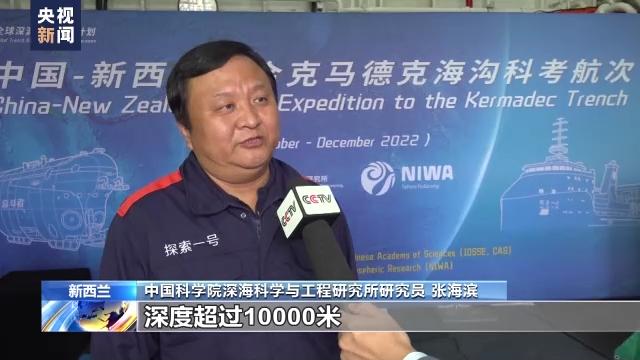 中国科学院深海科学与工程研究所研究员 张海滨:克马德克海沟位于新西兰北部海域,深度超过10000米,是世界上最深的几个海沟之一。本次中新联合科考对深入理解克马德克海沟的地质构造以及环境和生命特征有着非常重要的意义,同时,经过本次科考,将有力推动中新两国在深渊科学领域开展广泛和深入的交流。
