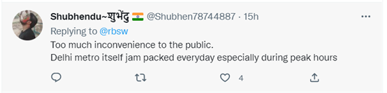 还有印度网友说:“对公众太不方便了。新德里地铁本身每天就很拥挤了,特别是在高峰期。”↓
