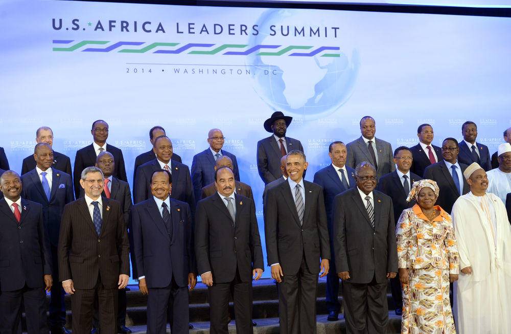 2014年8月6日,在美国首都华盛顿,美国总统奥巴马(前右四)和前来参加美非峰会的非洲领导人合影。新华社记者殷博古摄