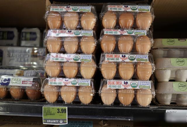 这是4月5日在美国旧金山湾区米尔布雷一家超市拍摄的鸡蛋。新华社发(李建国摄)