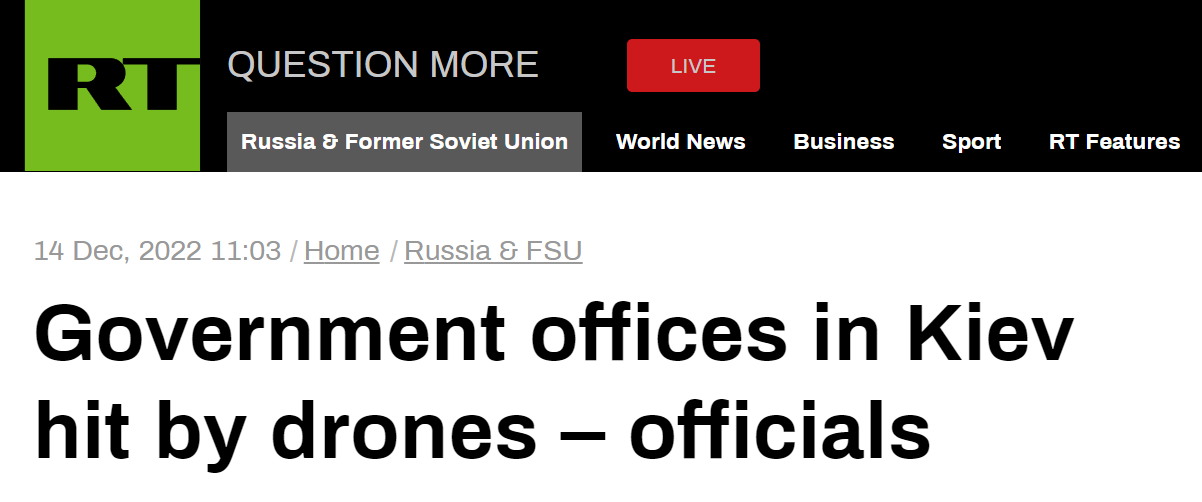 RT称,基辅军事管理部门负责人谢尔盖·波普科也表示,基辅遭到了“敌方无人机的两波袭击”,乌克兰防空部队摧毁了13架无人机。
