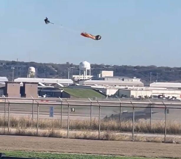 当地时间周四(15日),美军一架第五代战斗机F-35B闪电II在得克萨斯州北部一个空军基地垂直降落时发生坠毁,飞行员随即弹射视频截图