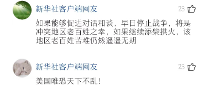 这组“四连发”稿件引起国内外网友热烈讨论。尤其是在海外社交媒体平台上,众多网友纷纷留言,批评美国为一己私利在俄乌局势上“火上浇油”等霸权主义行为,同时呼吁和平解决乌克兰危机,祈愿新的一年世界和平。