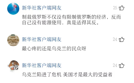 《乌克兰危机以来,经济民生有多伤?》聚焦俄乌冲突分别对两国经济民生带来的冲击和对全球经济复苏的不利影响,一针见血地指出“在全球经济复苏受到乌克兰危机深刻影响的同时,美国则是这场危机最大的受益者。”