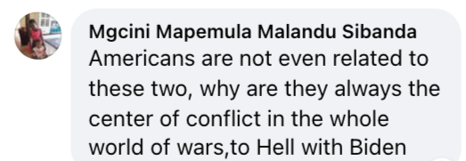 海外网友MgciniMapenulaMalanduSibanda留言:他们(美国)为什么总处于世界各处战场的冲突中心?