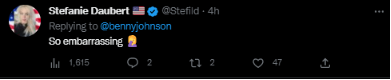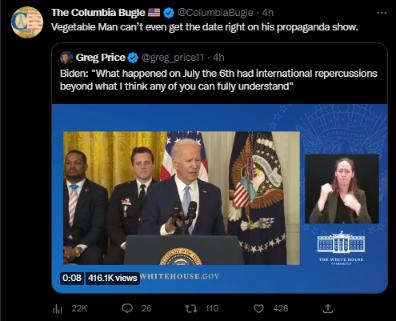 推特账号特朗普支持者“哥伦比亚号角”吐槽称,拜登“甚至无法在他的宣传表演中说对日期”。此外,美国保守派人士、电视主持人本尼·约翰逊称,“真是个笑话”。↓