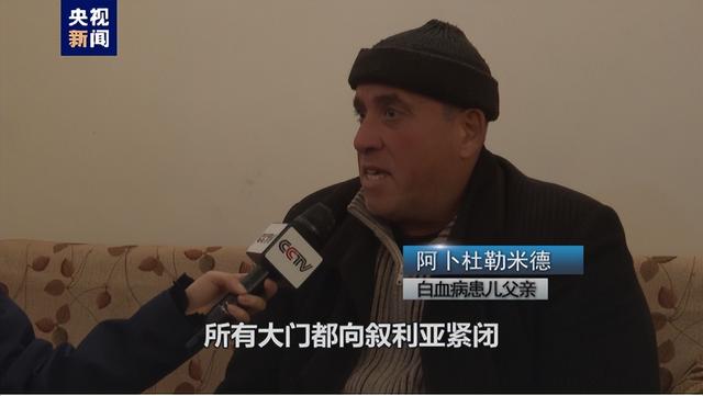白血病患儿的父亲 阿卜杜勒米德:由于美国和欧洲的制裁,所有大门都向叙利亚紧闭,这给我孩子的治疗带来阻碍,也给叙利亚特别是阿勒颇的患病儿童带来阻碍。他们需要药,但有时找不到,很难保障需要化学药物的治疗。