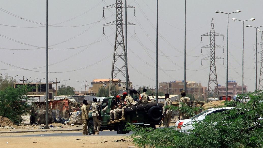 当地时间2023年4月15日,苏丹喀土穆,军队士兵在喀土穆部署,当天,苏丹首都喀土穆上空升起浓烟,多地传出激烈交火声。视觉中国图