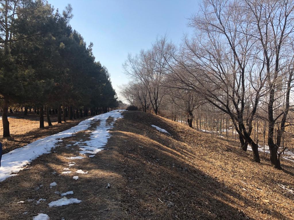 春和景明,几排樟子松正点缀起丛丛绿芽。斑驳树荫掩映下,一道缓坡出现在道路旁。登上两米多高的坡顶,这道缓坡就像一条遒劲的“土龙”,显现出雄壮的身姿。