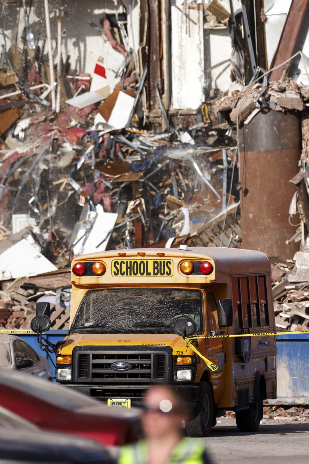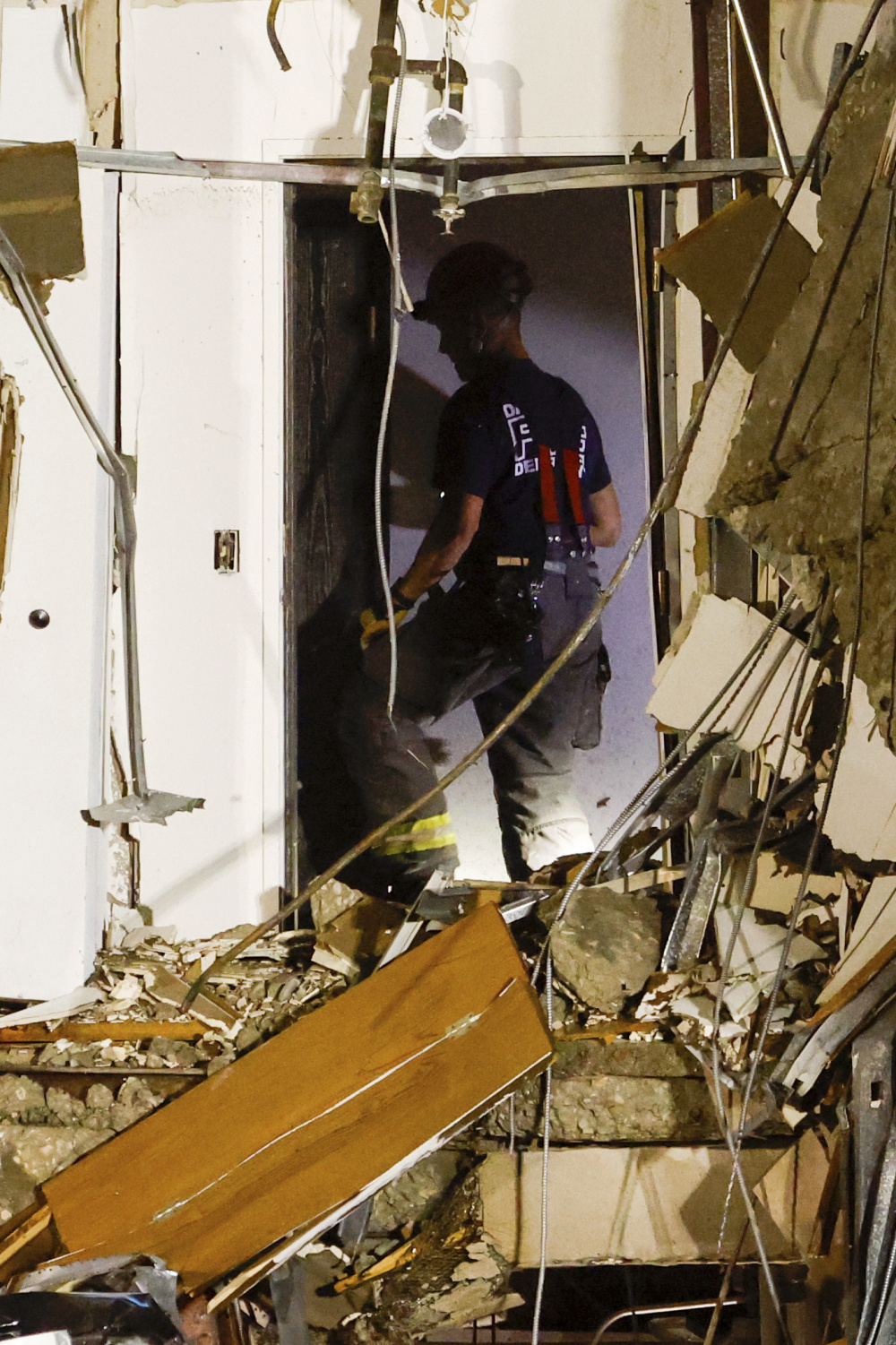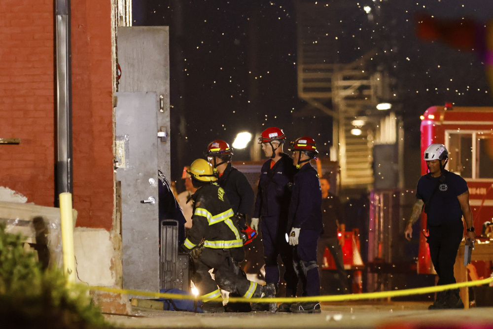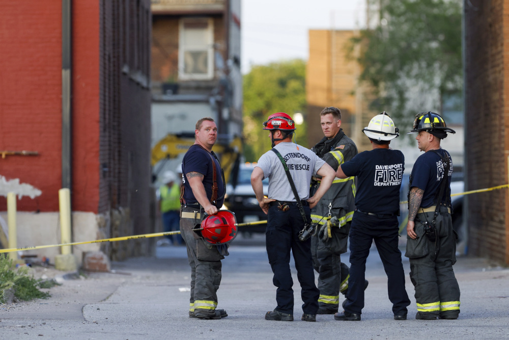 5月28日,救援人员在美国艾奥瓦州达文波特的建筑物坍塌现场工作。新华社/美联