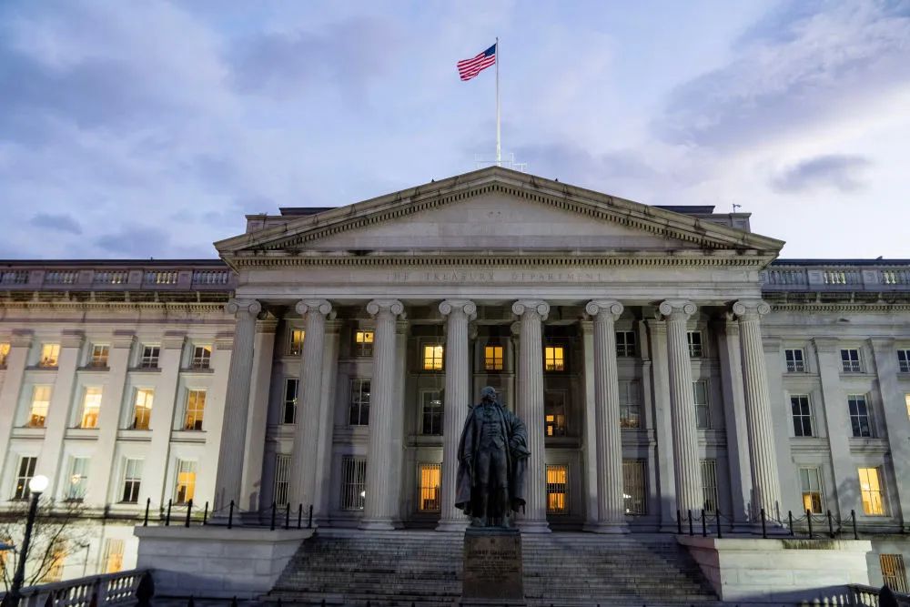 这是1月20日在美国首都华盛顿拍摄的财政部大楼。新华社记者刘杰摄