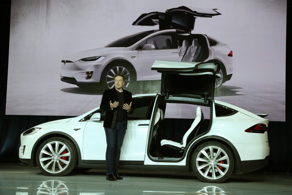 2015年9月29日,在美国加利福尼亚州的弗里蒙特,特斯拉汽车公司首席执行官埃隆·马斯克介绍该公司ModelX纯电动运动型多功能车。新华社发(刘艺霖摄)