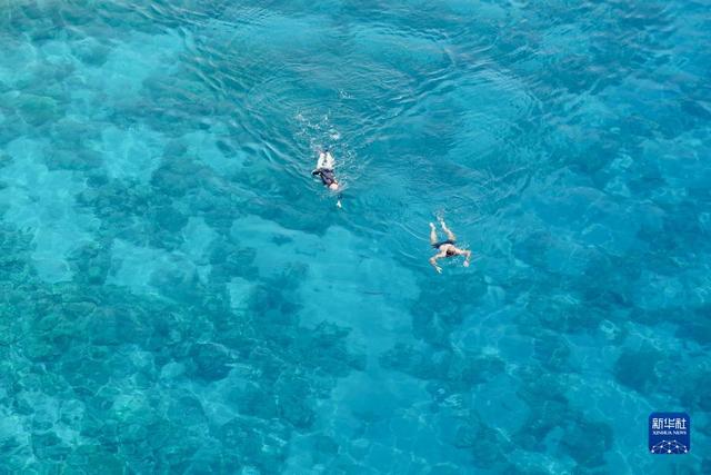 6月1日,人们在以色列海滨城市埃拉特的红海海域游泳。新华社记者 王卓伦 摄