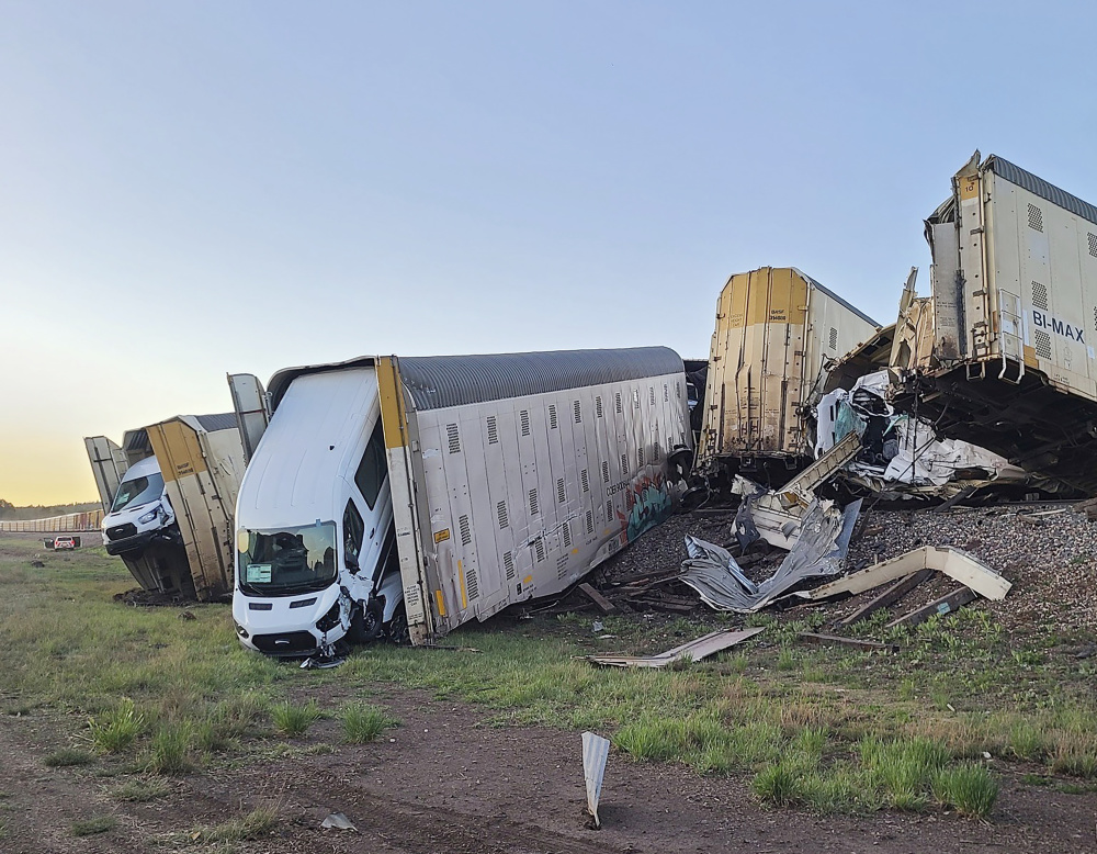据美联社8日报道,一列运载汽车的货运列车7日在美国西南部亚利桑那州北部脱轨,导致23节车厢和其中装载的汽车严重损毁。