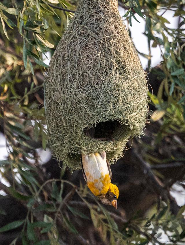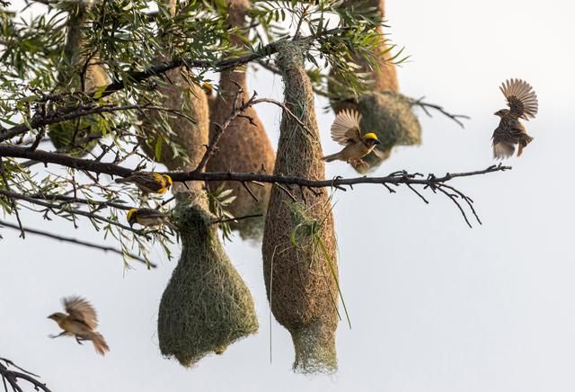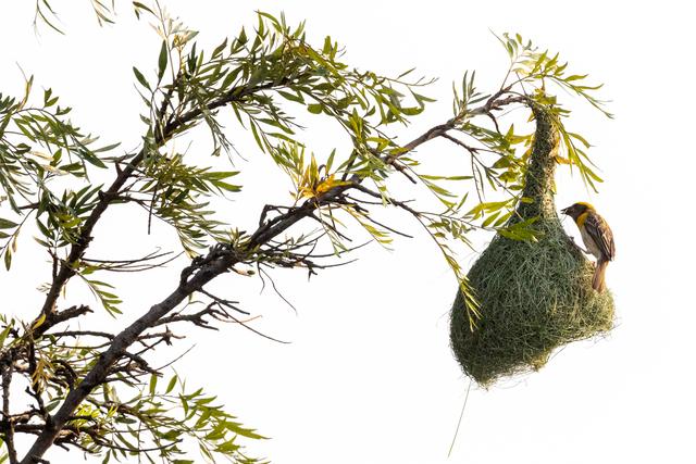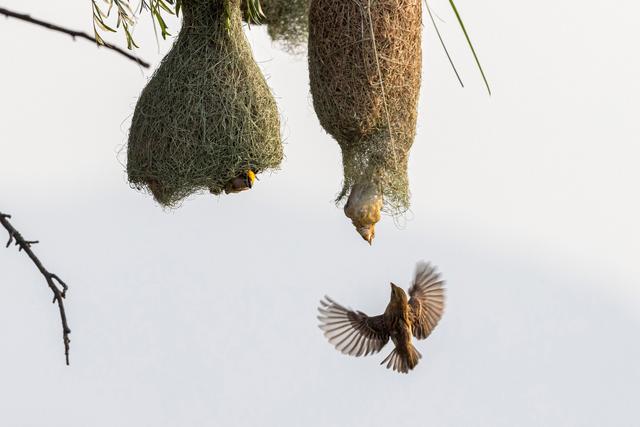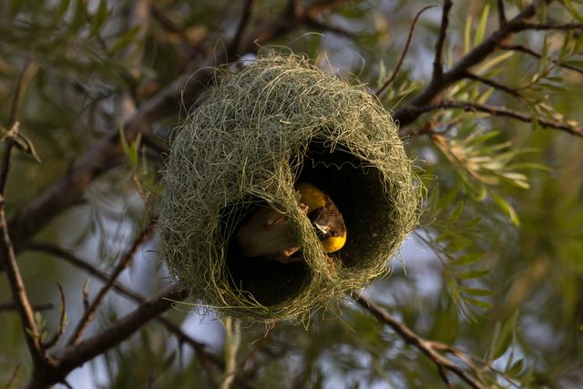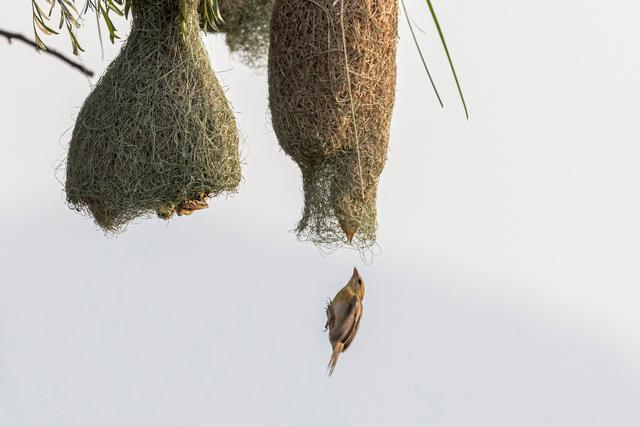 6月9日,在尼泊尔加德满都郊外的巴克塔普尔森林,普通缝叶莺在季风雨季来临前筑巢。新华社/欧新