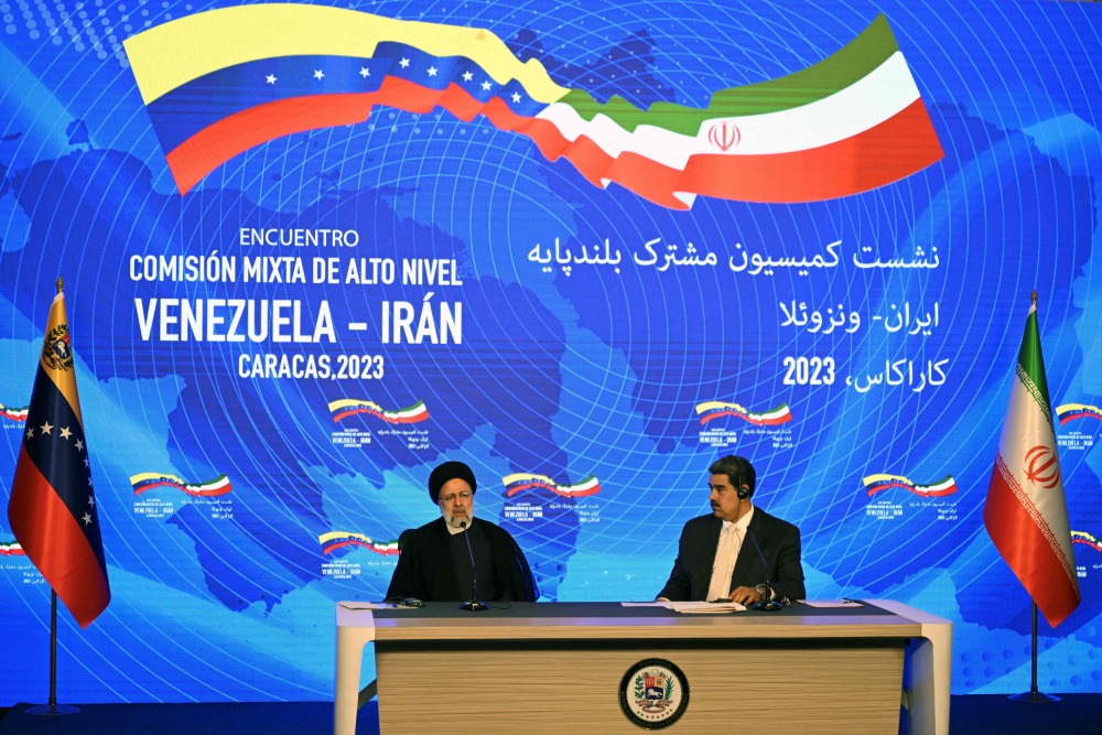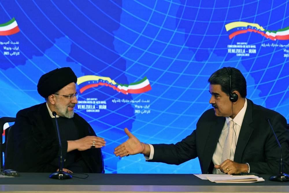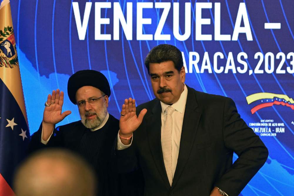 6月12日,在委内瑞拉首都加拉加斯,委内瑞拉总统马杜罗(右)与伊朗总统莱希出席联合新闻发布会。新华社/法新