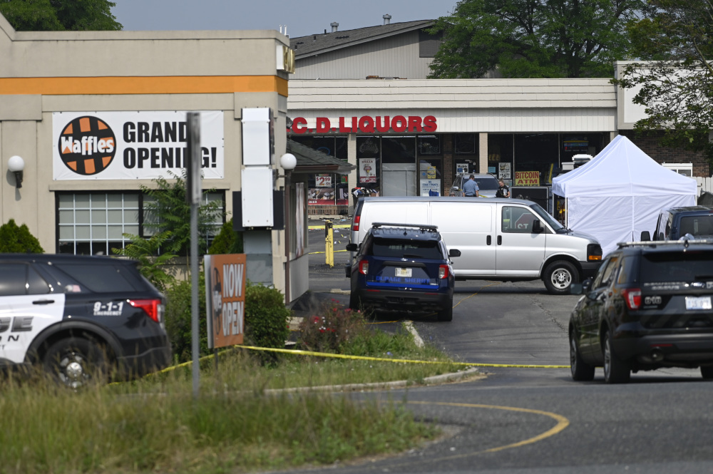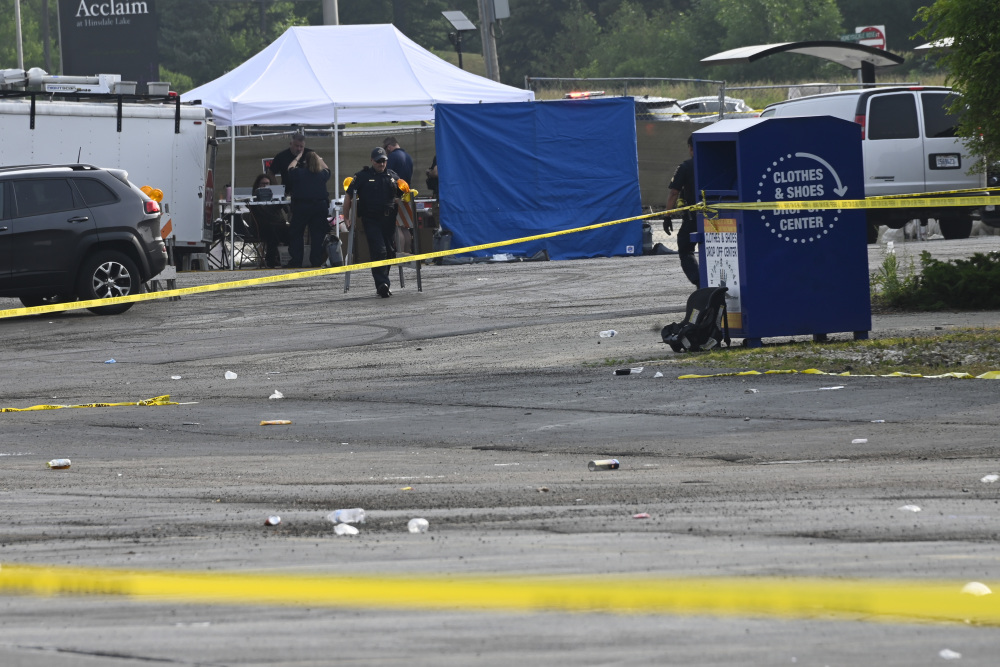 6月18日,警察在美国伊利诺伊州杜佩奇县威洛布鲁克的枪击事件现场调查。该地区18日凌晨发生枪击事件,导致一人死亡、22人受伤。新华社/美联