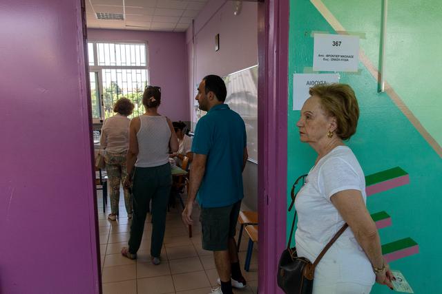 6月25日,人们在希腊雅典一处投票站等待投票。新华社发(马里奥斯·罗洛斯摄)