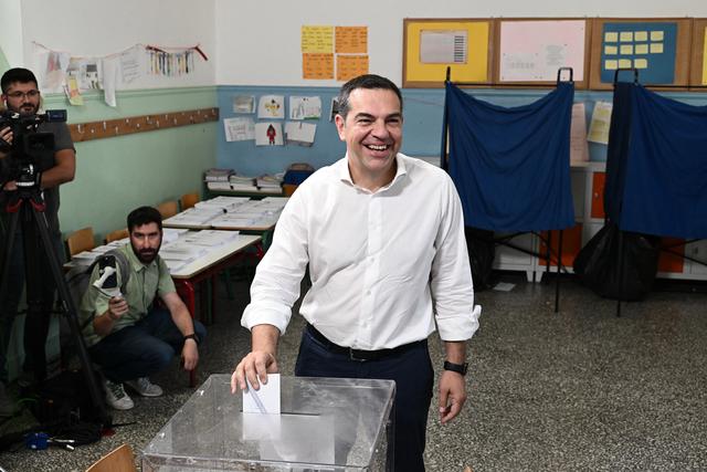 6月25日,希腊激进左翼联盟-进步联盟领导人亚历克西斯·齐普拉斯在雅典一处投票站参加投票。新华社发(马里奥斯·罗洛斯摄)
