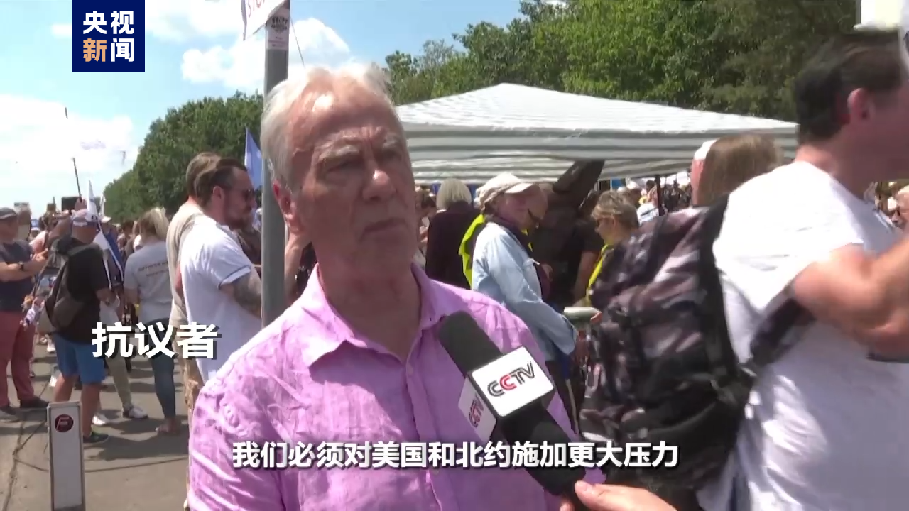 抗议者:我们必须对美国和北约施加更大压力使其改变方向,走上共同和平的道路。