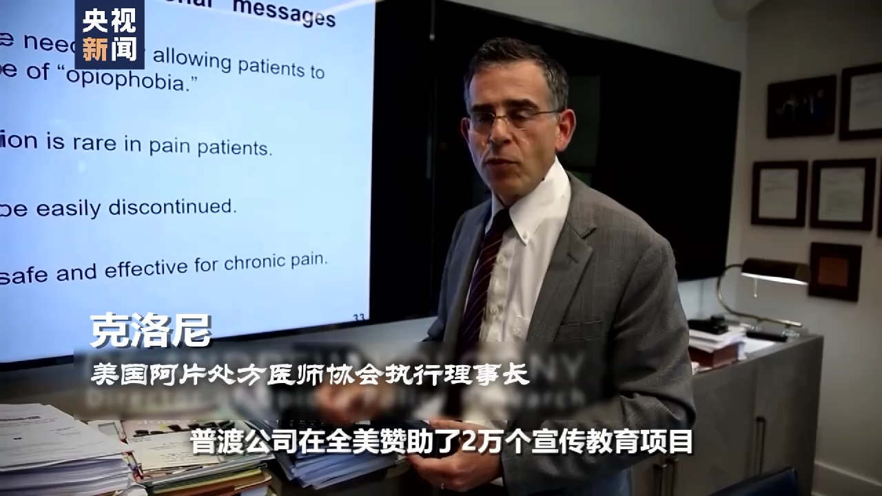 美国阿片处方医师协会执行理事长 克洛尼:奥施康定上市后的6年时间里,普渡公司在全美赞助了2万个宣传教育项目。阿片类药物的制造商和经销商,在10年内花费8.8亿美元,目的便是阻止更谨慎的处方。他们的花费比美国的枪支游说集团还要高8倍。