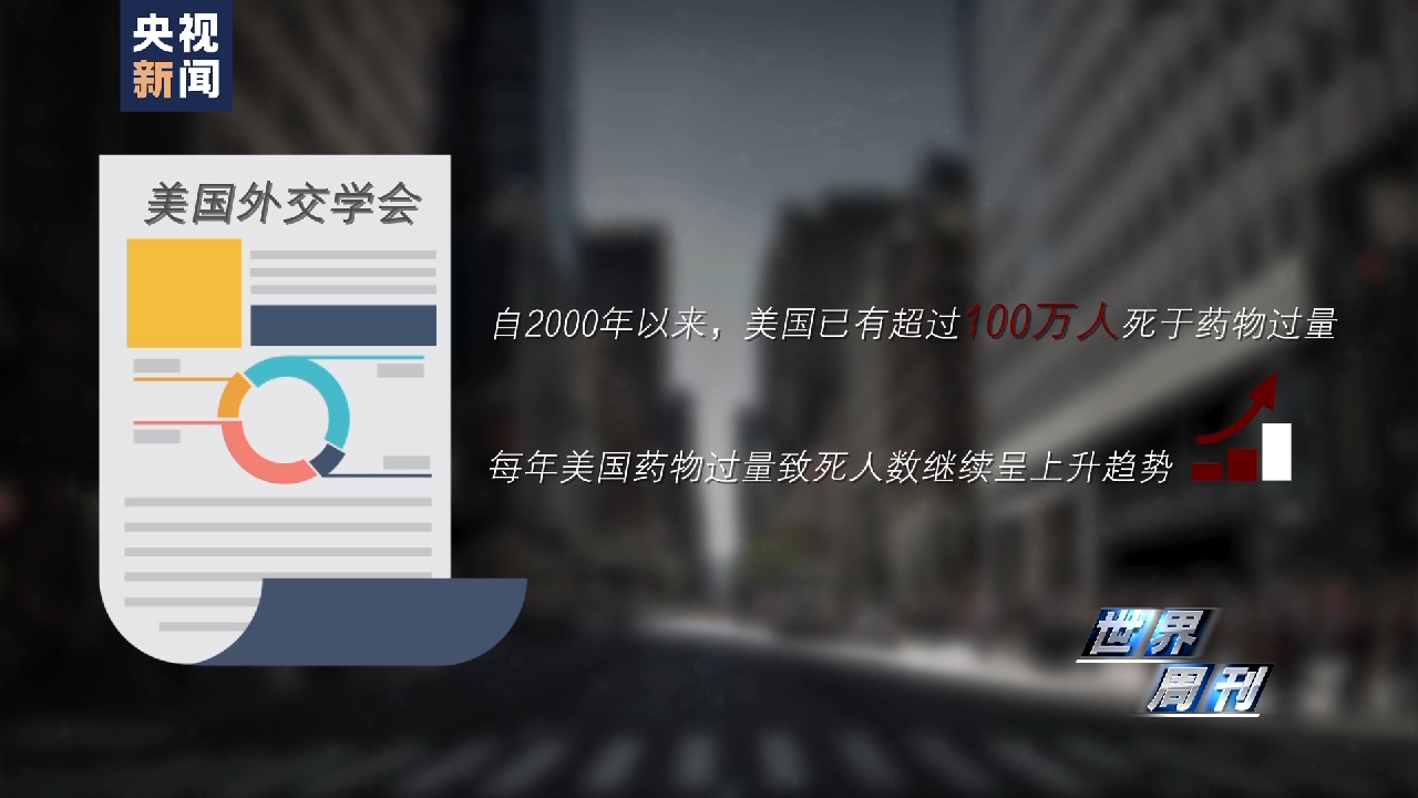 美国外交学会的一份报告指出,自2000年以来,美国已有超过100万人死于药物过量,每年美国药物过量致死人数继续呈上升趋势。据美国疾控中心的最新数据,在过去一年中,平均每天约有300名美国人死于药物过量。在12岁及以上年龄的约2.8亿美国人中,目前约有3190万吸毒者,平均每12个美国人中就有1人吸毒。