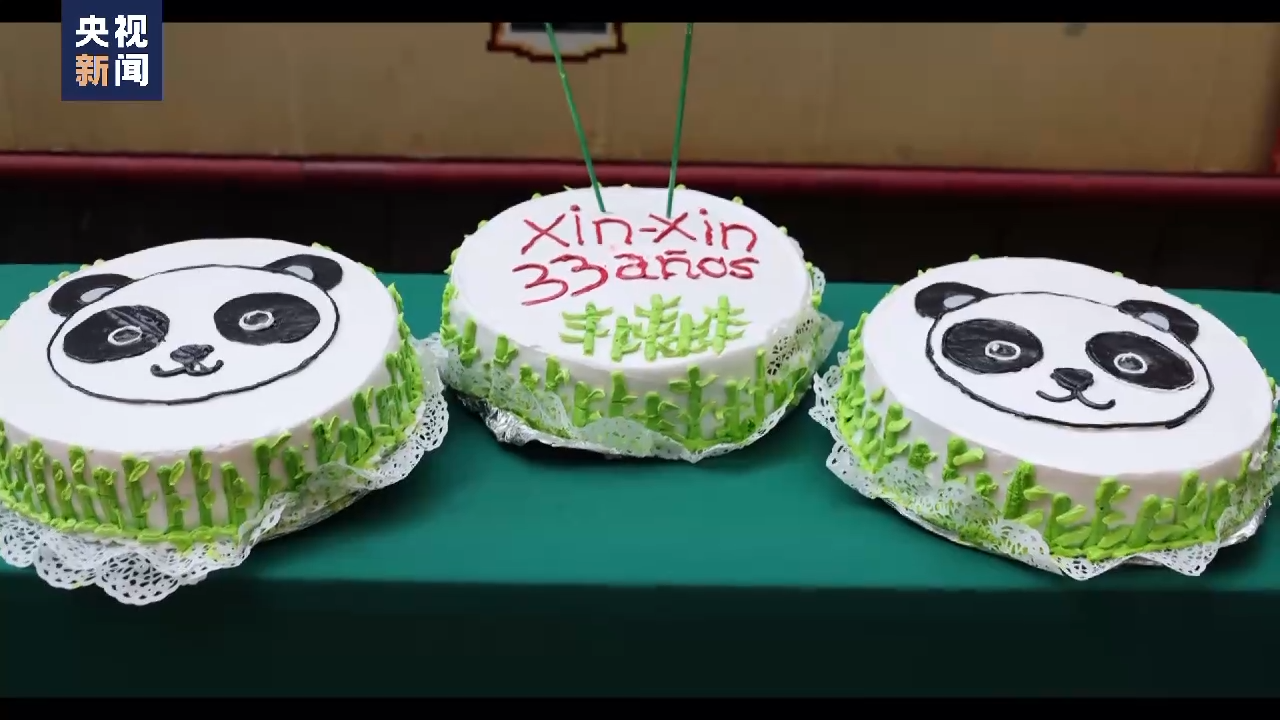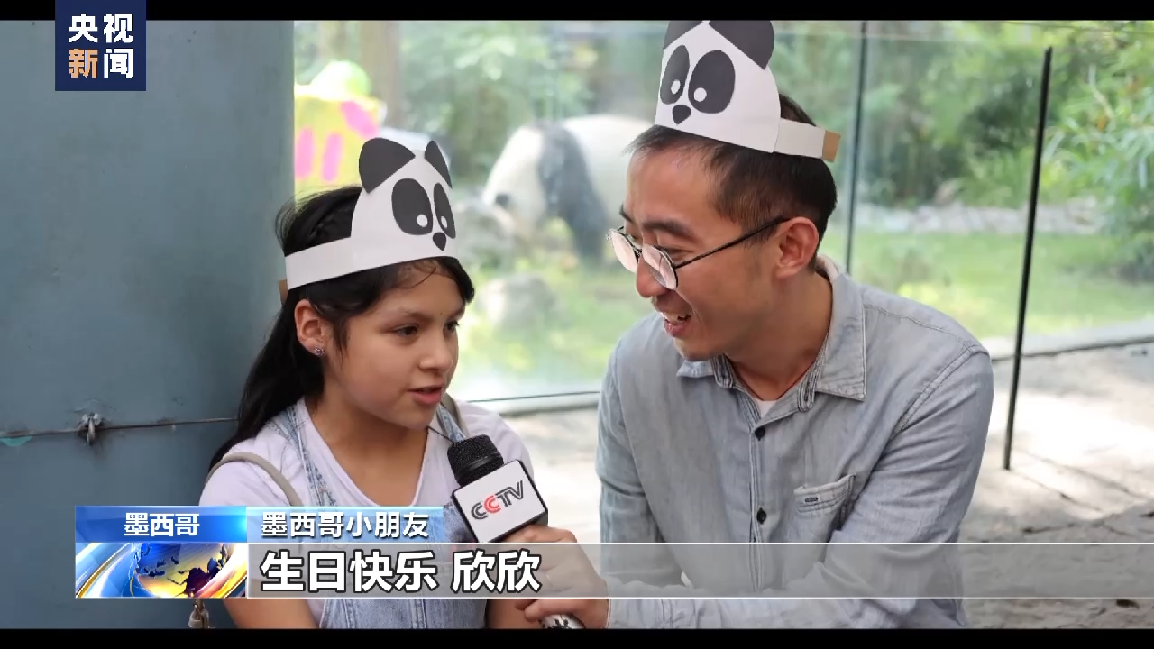 总台记者盛嘉迪:我们身后的就是大熊猫,中墨友谊的使者。大熊猫欣欣正在庆祝她的33岁生日。我们碰到一个墨西哥小朋友,听听她有什么生日祝愿送给欣欣。