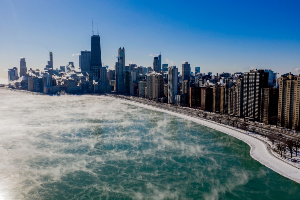 这是在美国芝加哥拍摄的结冰的密歇根湖(2019年1月30日摄)。新华社发(帕特里克·戈尔斯基摄)