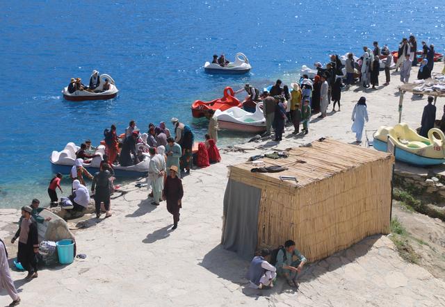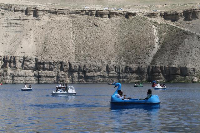 7月3日,游客在阿富汗巴米扬省班达米尔国家公园内游玩。新华社发(阿扎德摄)