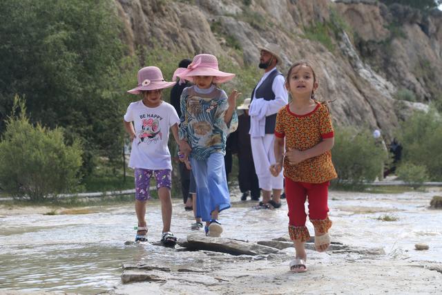 7月3日,儿童在阿富汗巴米扬省班达米尔国家公园内游玩。新华社发(阿扎德摄)