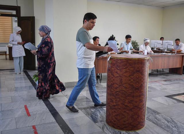 7月9日,在乌兹别克斯坦首都塔什干,一名男子在投票。新华社/路透