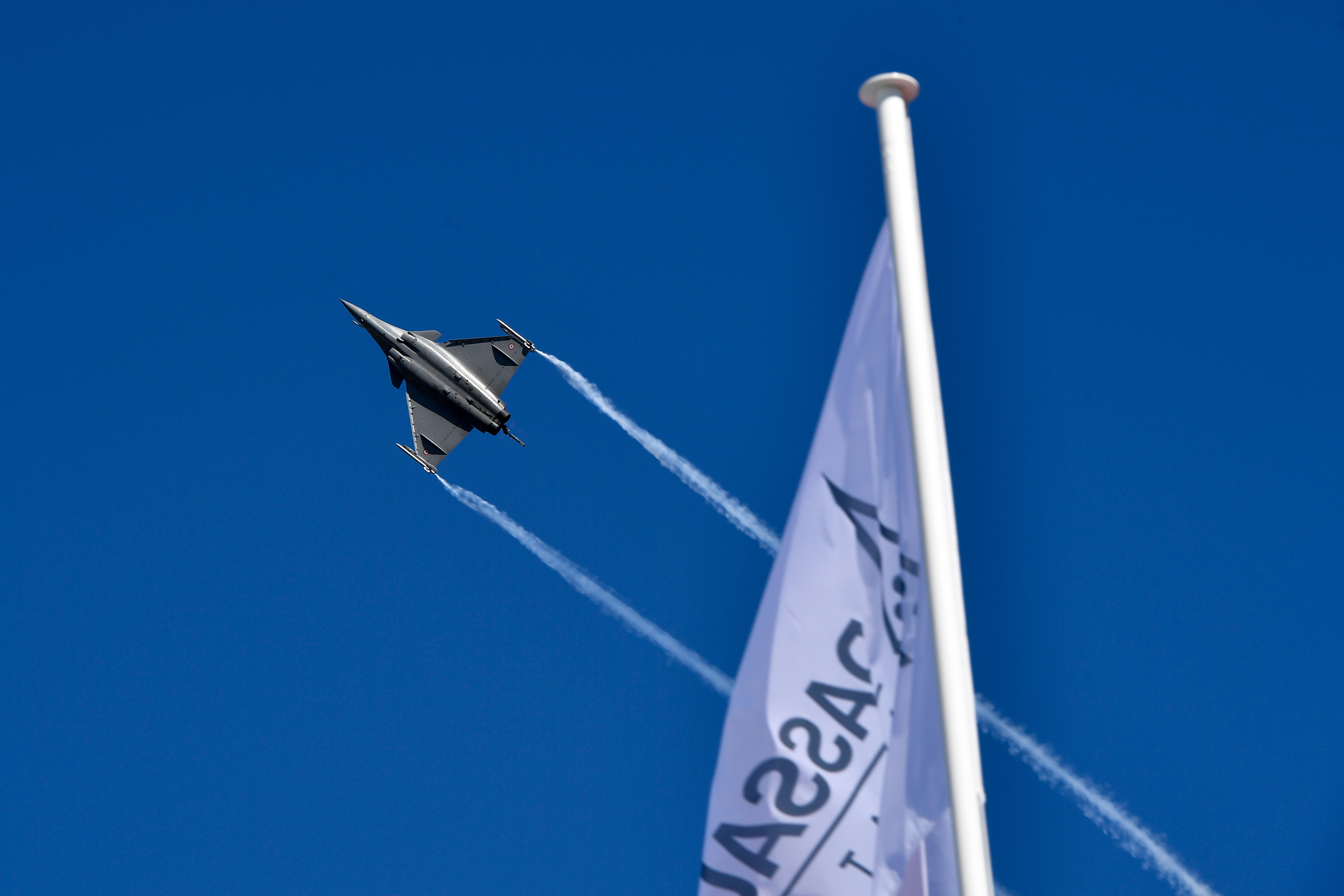 2017年6月19日,在法国巴黎近郊的布尔歇机场,达索公司的“阵风”战机参加飞行展示。新华社记者陈益宸摄
