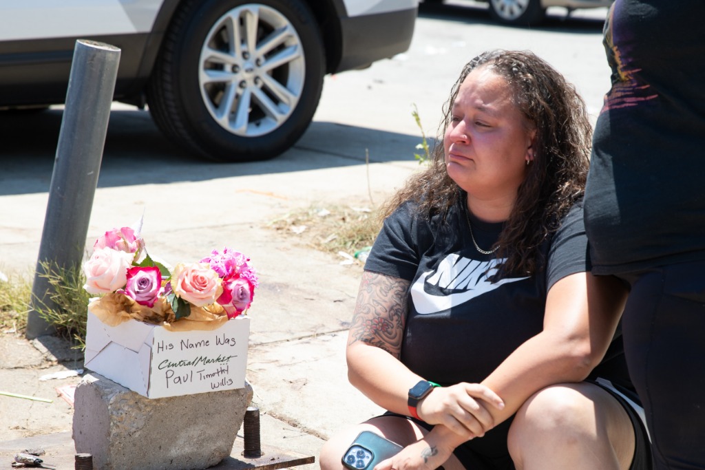 7月4日,一名妇女在美国得克萨斯州沃思堡枪击事件现场附近哀悼遇难者。新华社发(田丹摄)