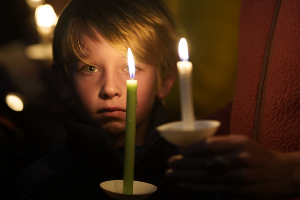 1月27日,一个男孩在美国加利福尼亚州半月湾市举行的守夜活动中哀悼枪击事件遇难者。新华社记者吴晓凌摄