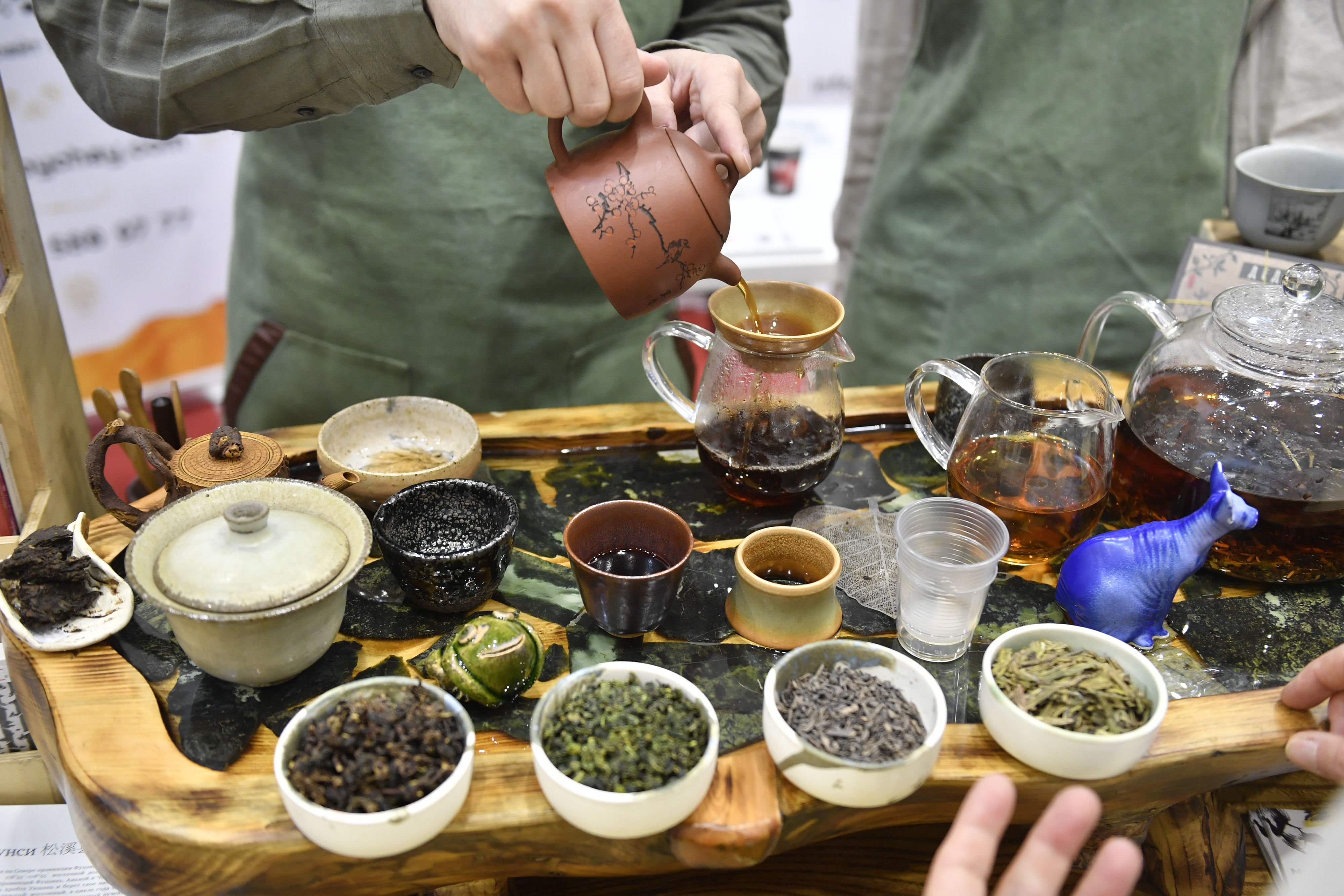 这是7月14日在俄罗斯莫斯科举行的茶业博览会上拍摄的不同品种的茶叶。新华社发(亚历山大摄)