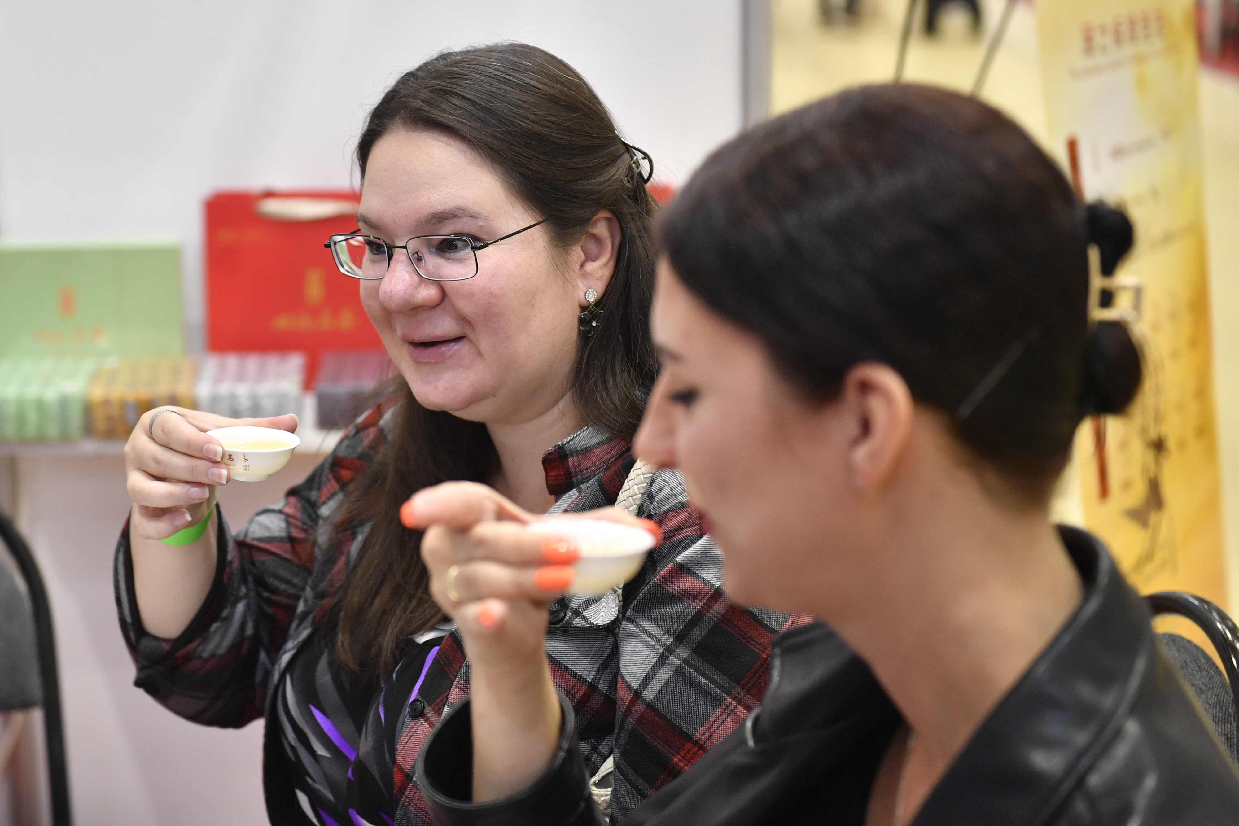 在俄罗斯知名茶企Moychai的展台,品茶的参观者络绎不绝。负责接待的马克西姆介绍说:“我们会选取中国茶叶作为基茶,添加俄罗斯草本植物进行创新,使之更贴近俄罗斯民众的口味。”